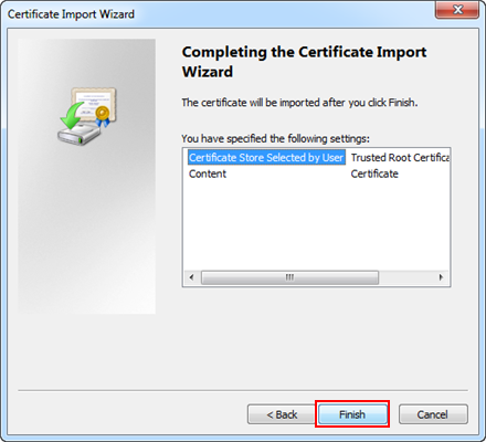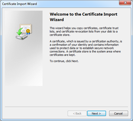Das Dialogfeld Certificate Import Wizard wird angezeigt.