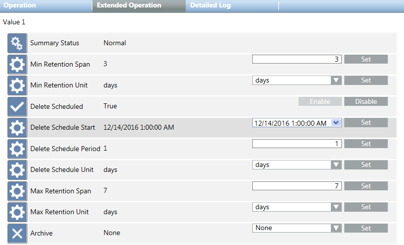 1. Wählen Sie Projekt > Managementsystem > Server > Hauptserver > History-Datenbank > Benutzerdef. Archivgruppen > [7-Tage-Archivgruppe].