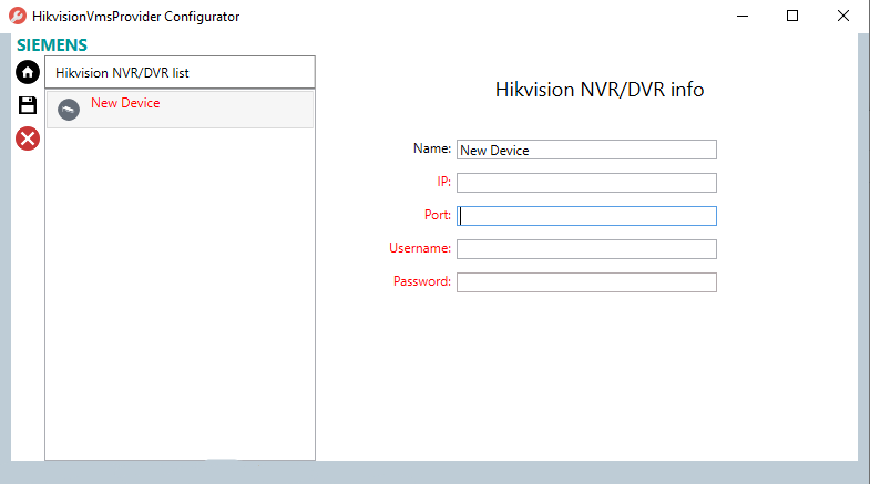 b. In the Hikvision NVR/DVR info page, complete the required fields.